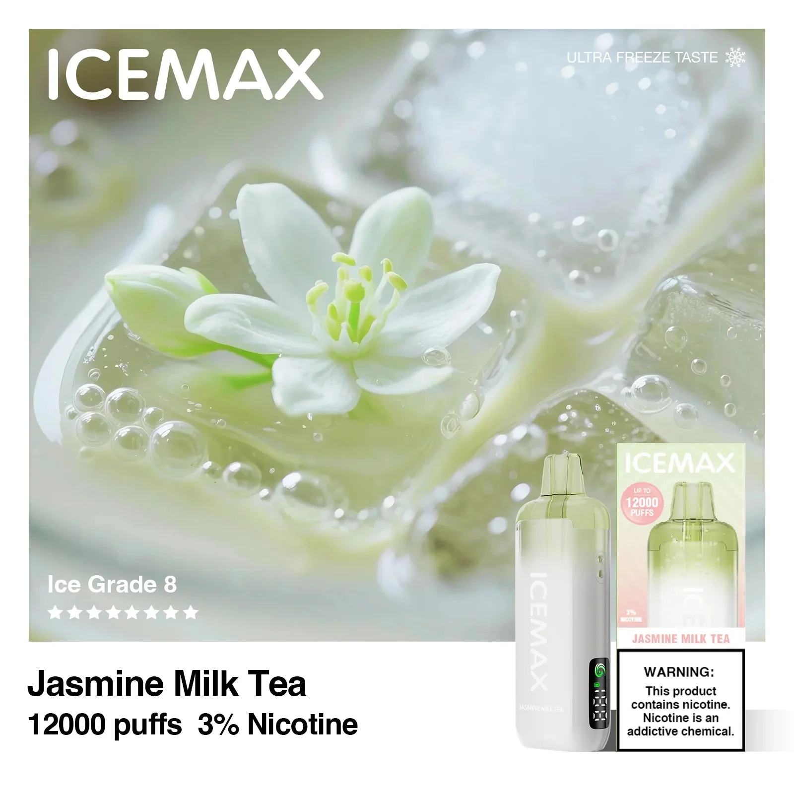 正品冰暴Icemax Ultra Freeze Taste 12000口超冰爽液晶显示屏一次性电子烟-多口味可选