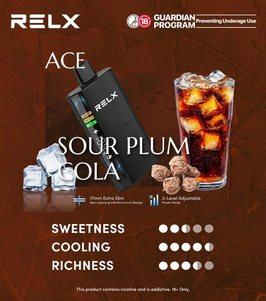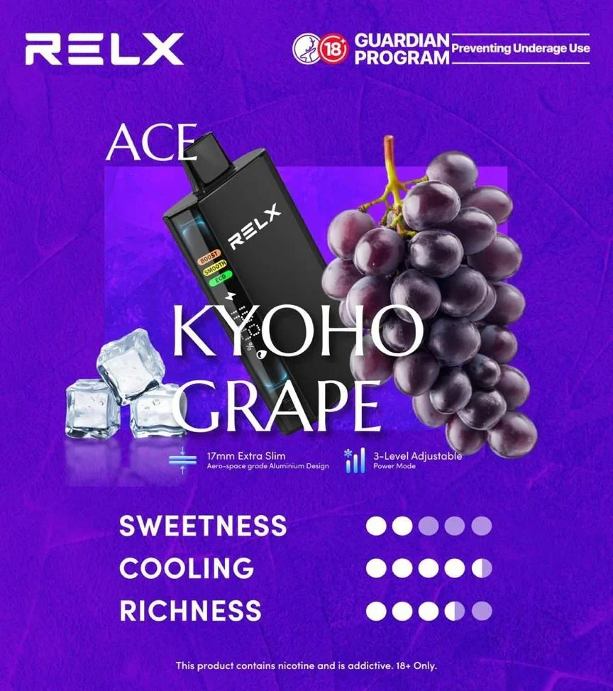 正品悦刻RELX ACE 30000口是由 RELX 悦刻生产的高口数一次性电子烟,主打 “超长使用次数” 和 “便捷性”,其厚度仅仅17mm,非常易于携带。RELX ACE 30000口一次性电子烟具有非常独特的航空级铝材材质外观,坚固耐用,酷炫炸!其因超大的预装油量和出色的口味而闻名于世,稳定的双网丝结构,极大地提升雾化效率和口感还原度。此外,悦刻RELX ACE 30000口提供Boost (强劲)/Smooth (顺滑)/Eco (节能)三种功率模式调节,用户可根据不同偏好通过按键切换选择。其正面的智能液晶显示屏能小时火力与工作模式,电量和剩余烟油含量,让您掌控每一口的顺畅享受!